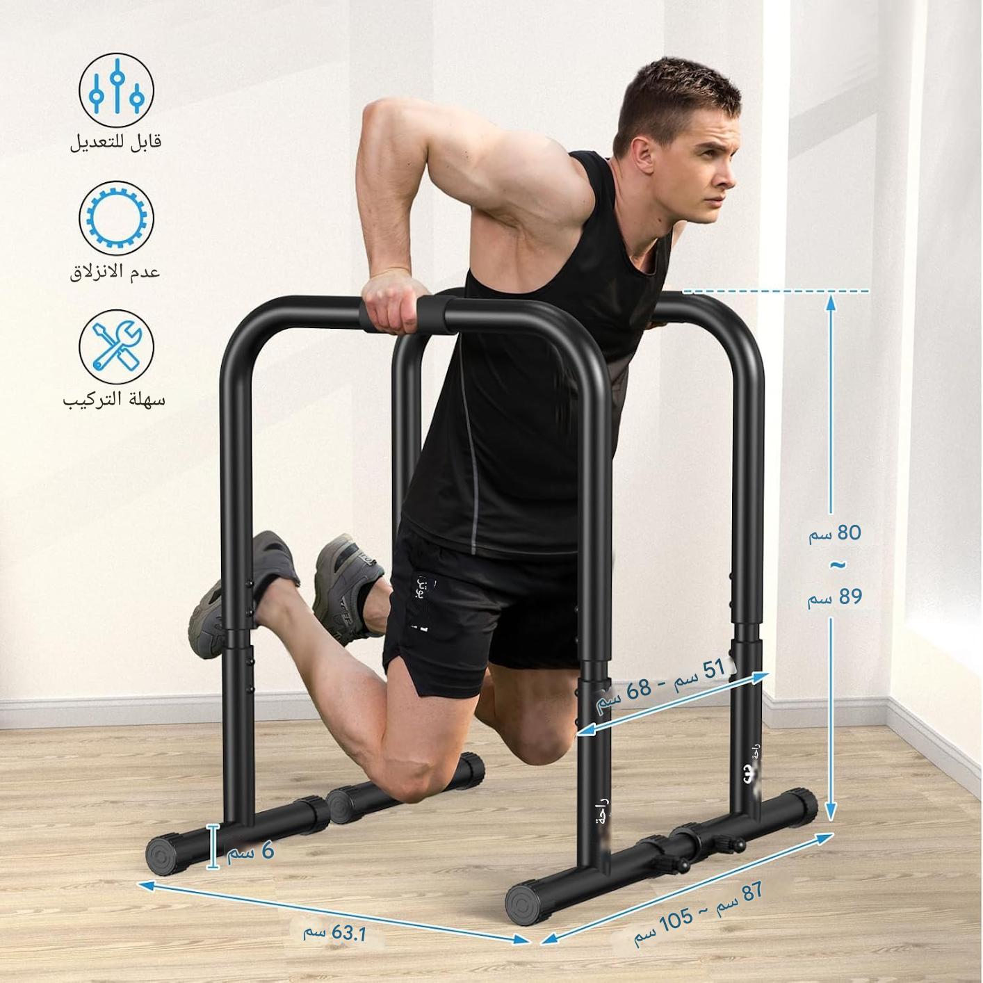 - هيكل متعدد الوظائف: تدعم القضبان المتوازية العديد من أنواع البرامج الرياضية المختلفة، مثل السحب والدفع ورفع الركبة والانحناء والرفع وتمديد الذراعين.